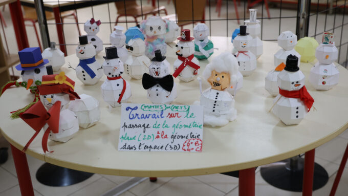 Les élèves de 6eB et 4eC réalisent des bonhommes et flocons de neige à partir des notions de géométrie